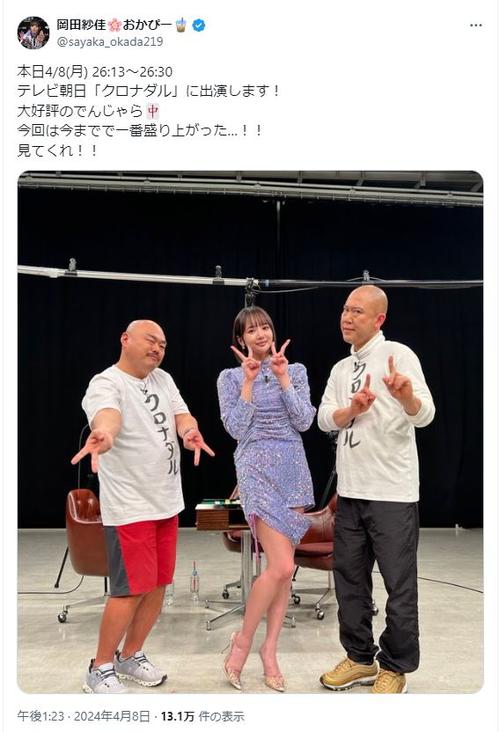 @masamas23349820返信先:@sunjapo_tbs 岡田紗佳とゆうちゃみの美脚対決がすごくいい! 毎週1人は脚を出すタレントを出してほしいと思っていたが、今週は贅沢だ! やはりサンジャポは、こういった少し男心を掴む番組であってほしい。