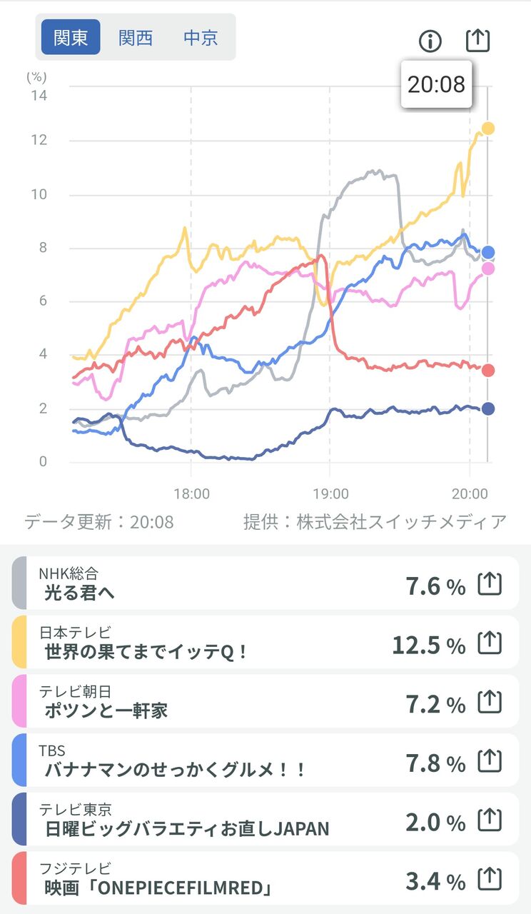 ワンピースと大河が喰われたか…