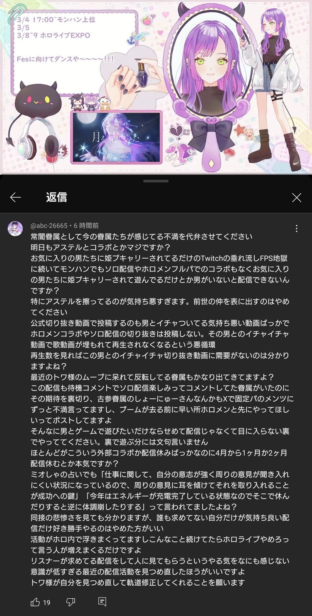 この長文意味わからんのだけど、とりあえず男とコラボすんなってキレてるって認識でおk?