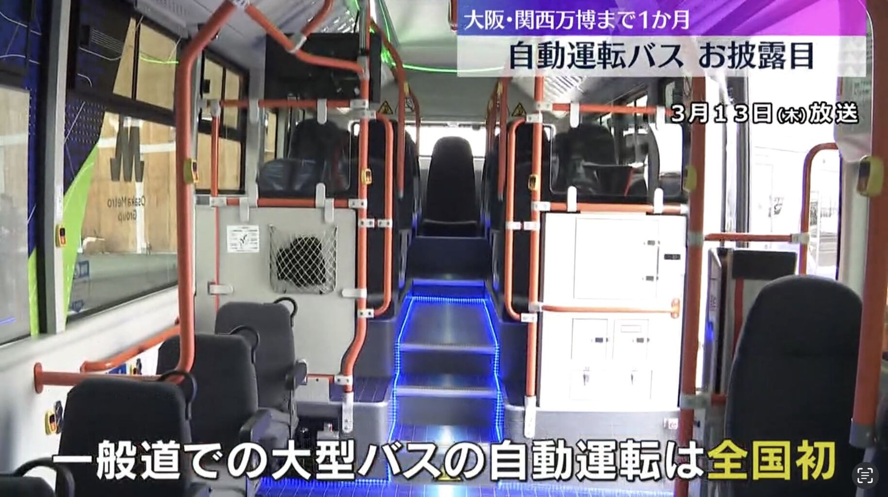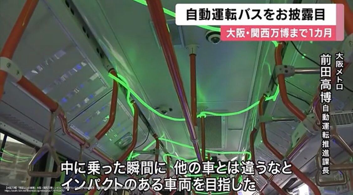 大阪メトロは、来場者を会場に運ぶルートの一部区間で国内の大型バスとしては初となる、運転手が操作しない自動運転を目指している。