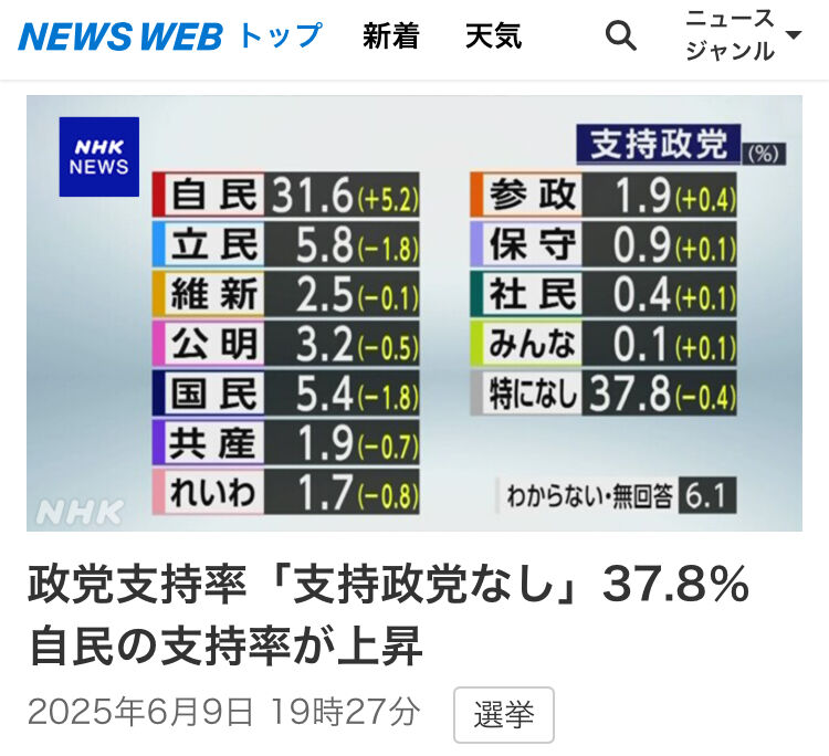 政党支持率(6月)