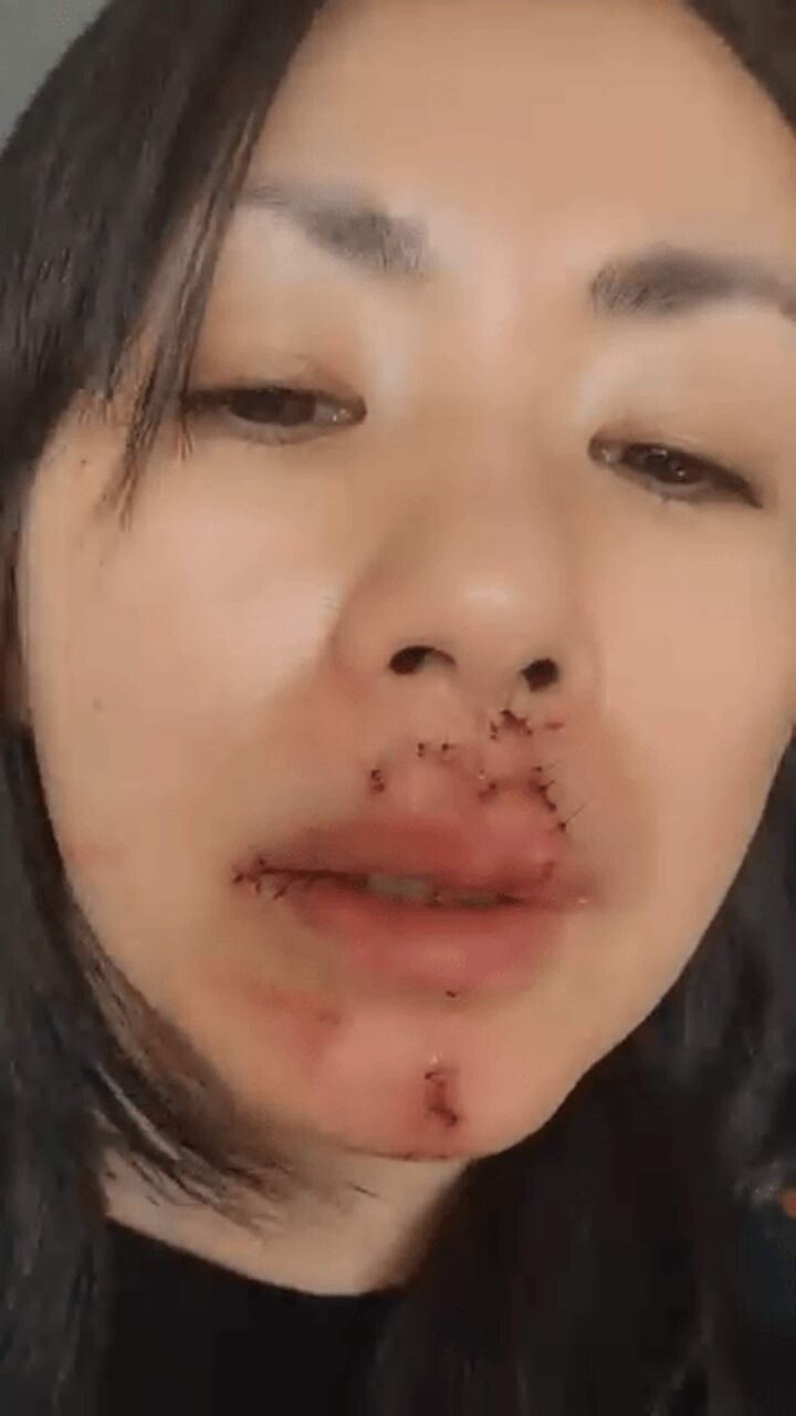 犬にかまれた次の日に撮影された動画では、小島さんは気丈に振る舞っていますが、口元には痛々しい手術の痕が。
