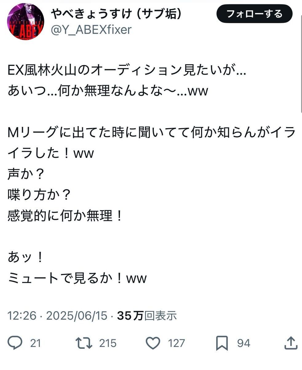 やべきょうすけの投稿、ちょっとキツめの私見ではあったけど、正直そこまで謝罪しないといけないレベルか?って印象もあるな。
